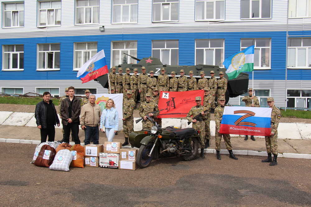Вместе с этой, теперь уже настоящей боевой единицей мототехники, нашим бойцам на фронт также будет передано и большое количество сопутствующих гуманитарных грузов, в частности — маскировочные сети, изготовленные волонтерами д. Николаевка Уфимского района, а также многое другое.