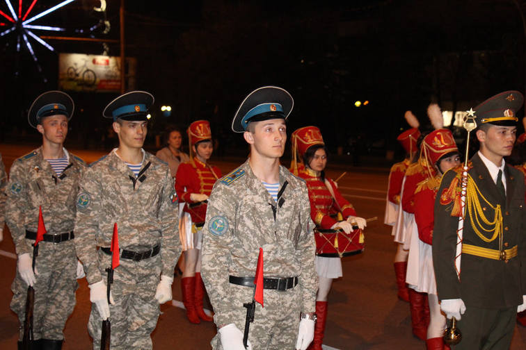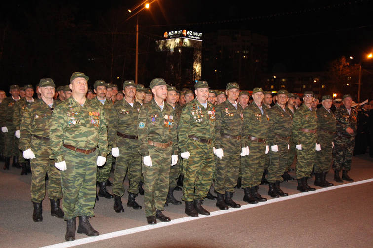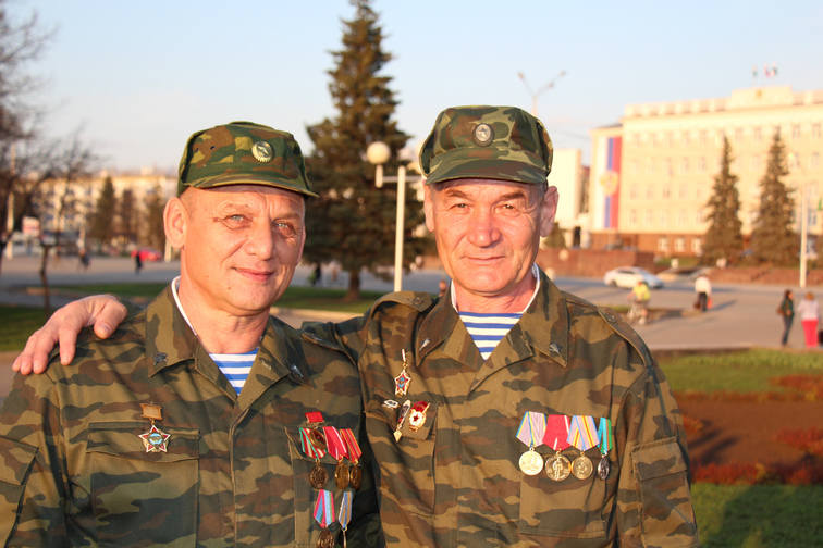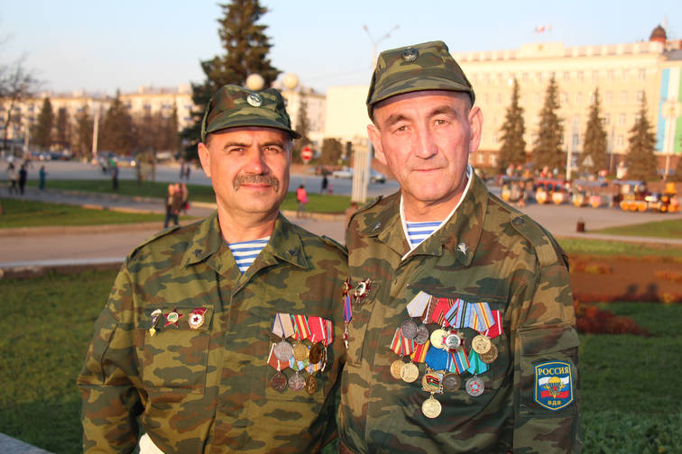 Среди участников парадной коробки ветеранов боевых действий Александр Иванович Чудов, участник войны в Афганистане в 1979 – 1980 годах, ветеран легендарного 345-го гвардейского полка. Рядом с Александром Ивановичем – его однополчанин Фаниль Наильевич Таюпов, ветеран войны в Афганистане, воевал в составе разведроты, дислоцировавшейся в Баграме. Участник самого начала событий в Афганистане в 1979 – 1980 годах.