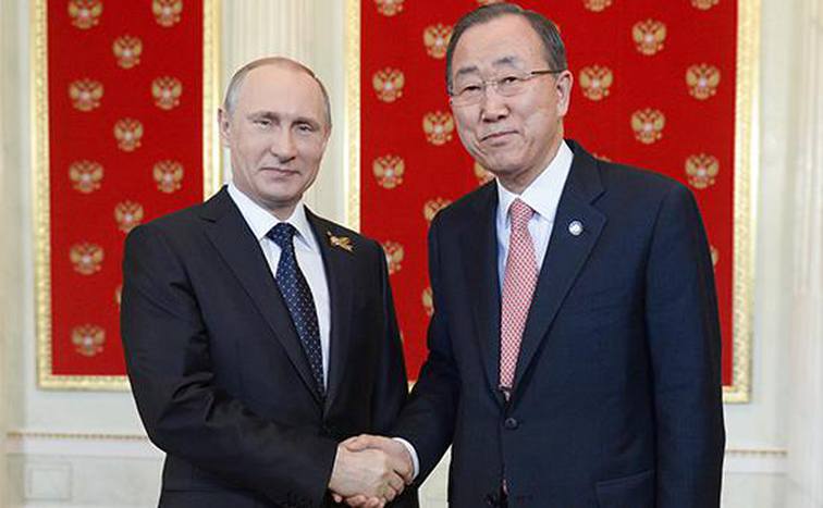 После парада Победы в Москве Пан Ги Мун заявил, что увидел на улицах «гордые лица россиян, приветствовавших российское правительство». Он отметил, что любовь жителей страны к Владимиру Путину является заслуженной. Генеральный секретарь ООН Пан Ги Мун после парада Победы в Москве отметил вклад президента России Владимира Путина в приверженность россиян миру и их искреннюю поддержку главы государства. Об этом Пан Ги Мун заявил во время встречи с Путиным в Кремле.