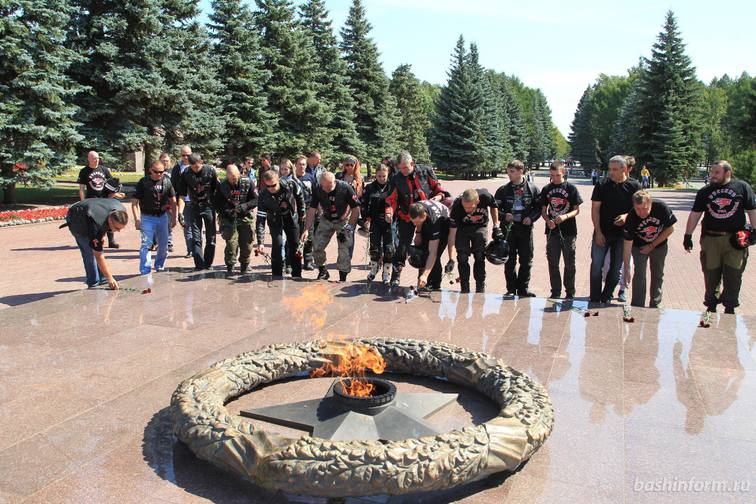 14 августа «Ночные Волки» посетили Уфу. В парке Победы байкеры возложили цветы к Вечному огню. Столица Башкортостана стала одной из точек маршрута мотопробега «Дороги Победы. На Севастополь!», которую организовали мотоклуб «Ночные Волки» и Федерация мототуризма России. Цель акции — увековечивание памяти героев Великой Отечественной войны и укрепление дружественных отношений между участниками.