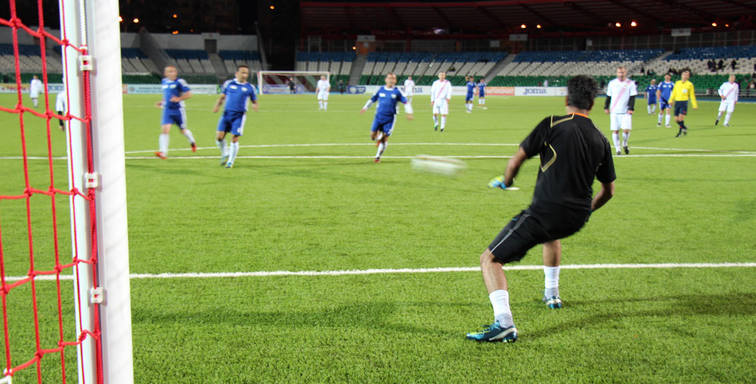 Во втором тайме игра стала веселее. Сборная Башкирии заработала пенальти на 53-й минуте матча (играли два по 35) и Томаров пробил вратаря сборной Афганистана, который направление удара угадал — 1:0.