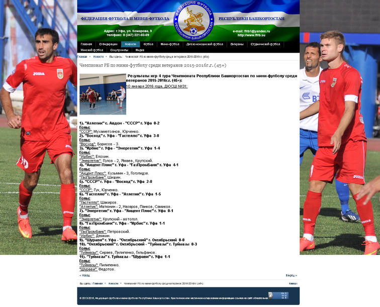 Но вернемся на наши спортивные площадки… Подробная информация о Чемпионате Республики Башкортостан 2015-2016 гг (45+) по мини-футболу среди ветеранов публикуется на сайте Федерации футбола и минифутбола Республики Башкортостан по адресу в Интернете http://www.ffrb.su/index.php/novosti/1000-677