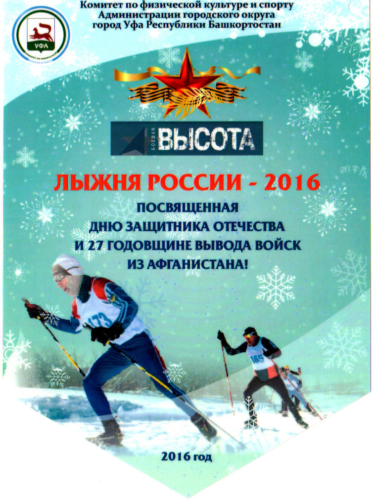 19 февраля на уфимском спортивном комплексе «Биатлон» состоялся Второй ветеранский традиционный Уфимский лыжный марш-бросок, посвященный Дню защитника Отечества и 27-й годовщине окончания боевых действий в Афганистане. Воины-интернационалисты – участники войны в Афганистане и ветераны боевых действий в других горячих точках, а также участники контртеррористической операции в Чечне провели свой марш-бросок в рамках лыжной гонки «Лыжня России – 2016».