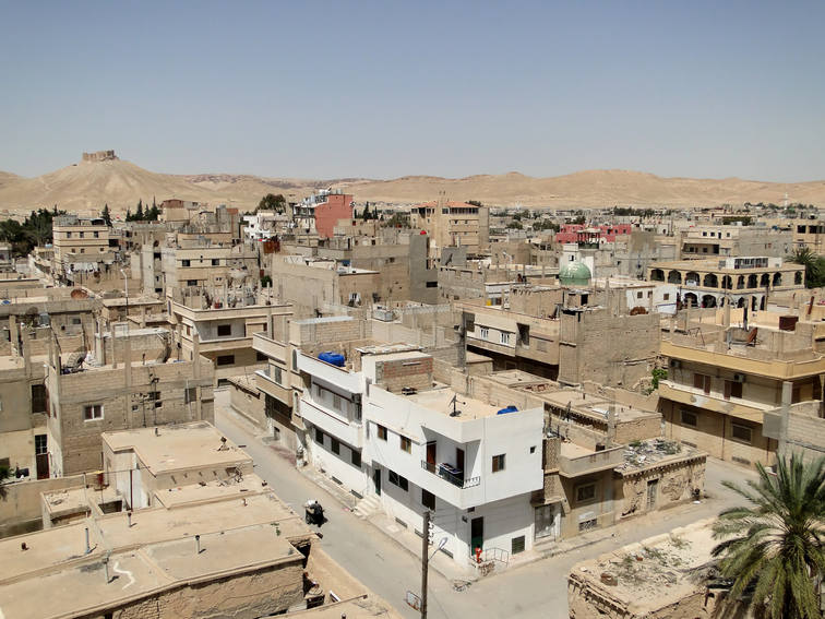 На фото вверху: населенный пункт Тадмор, вдали - цитадель, входящая в историко-архитектурный комплекс Пальмира.