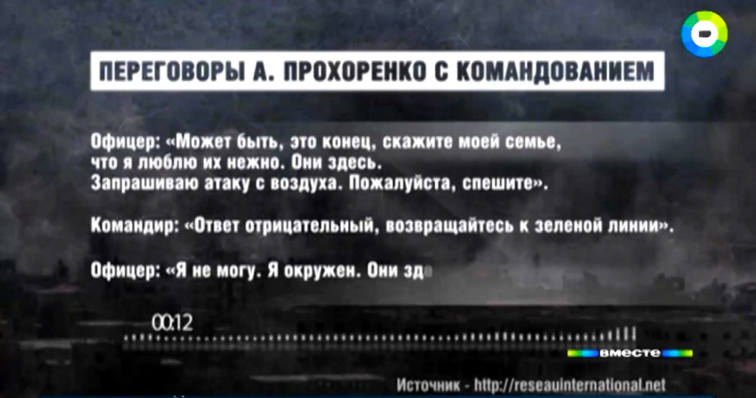 Офицер: Я не могу. Командир, я окружен. Они здесь. Я не хочу, чтобы они взяли меня и утащили в плен. Запрашиваю атаку с воздуха. Они будут издеваться надо мной и над униформой (России – прим.ред.). Я хочу умереть с достоинством, хочу, чтобы все эти ублюдки погибли вместе со мной. Пожалуйста, исполните мою последнюю волю – запросите атаку с воздуха. В любом случае, они убьют меня.