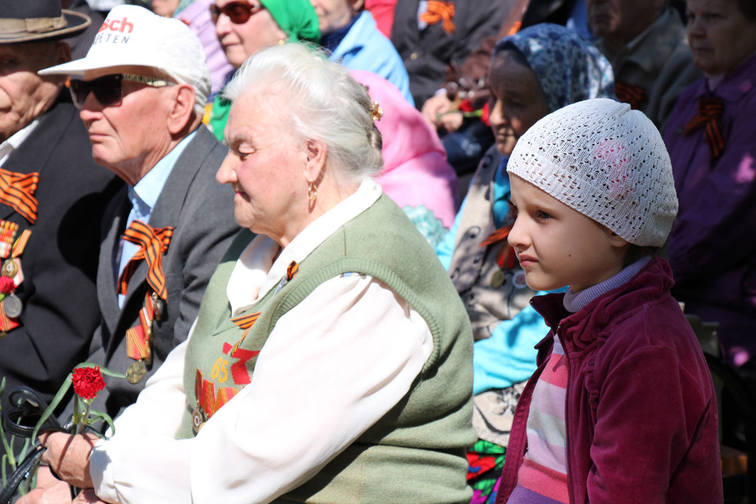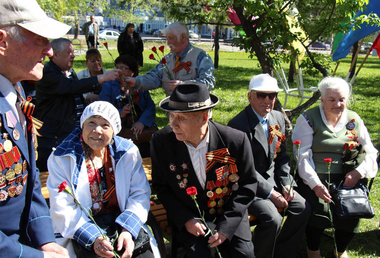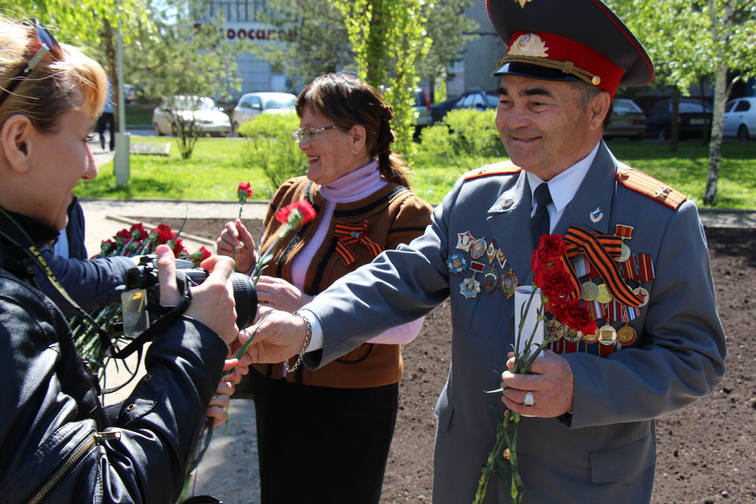В центре всеобщего внимания, конечно, были ветераны. К ним были обращены искренние слова поздравлений с Днем Победы и пожелания крепкого здоровья, мира и счастья! После завершения торжественной части митинга к бюсту великого полководца участники митинга возложили цветы.