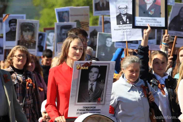 В Уфе 9 мая общероссийская гражданско-патриотическая акция «Бессмертный полк» объединила более 50 тысяч человек. Около 35 тысяч горожан и гостей столицы пронесли по проспекту Октября транспаранты с фотографиями солдат Великой Отечественной войны, не доживших до наших дней. Всего же вместе со зрителями в мероприятии приняли участие более 51 тысячи человек, сообщили в пресс-службе администрации Уфы.