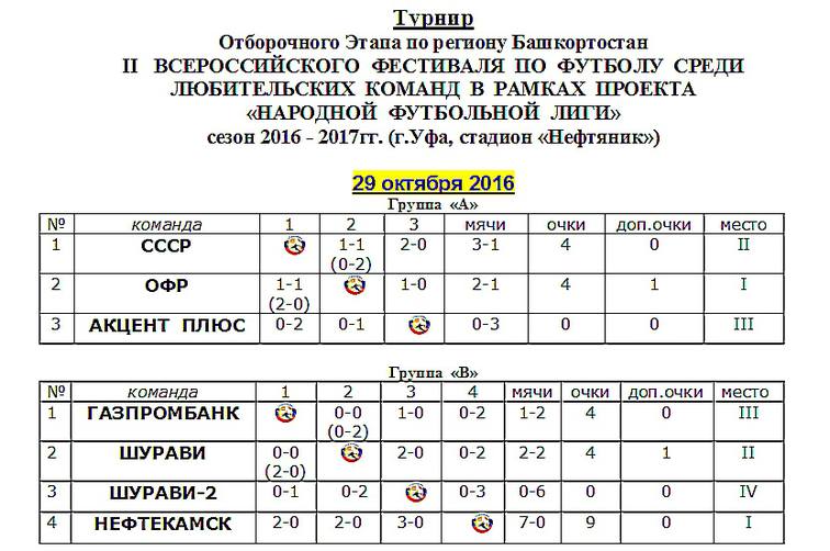 Уфимские футбольные команды ветеранов боевых действий в Афганистане «Шурави» и «Шурави-2» приняли участие в играх отборочного этапа 2-го Всероссийского Фестиваля по футболу среди любительских команд ветеранов (45+) в формате «7 х 7» В рамках проекта «Народная Футбольная Лига» (НФЛ).