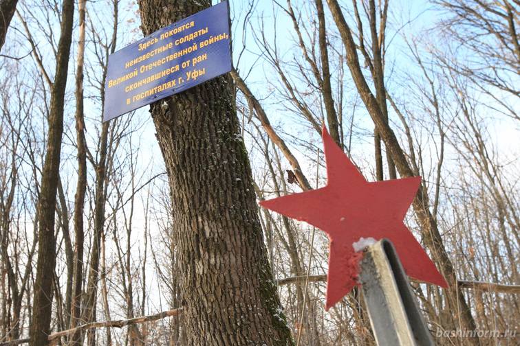 Сейчас память о захоронениях хранят только местные школьники. Вместе с учителем они прикрепили на дерево табличку «Здесь покоятся неизвестные солдаты Великой Отечественной войны, скончавшиеся от ран в эвакогоспиталях Уфы».