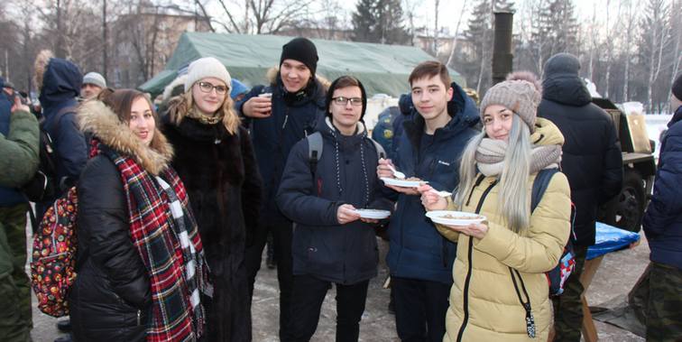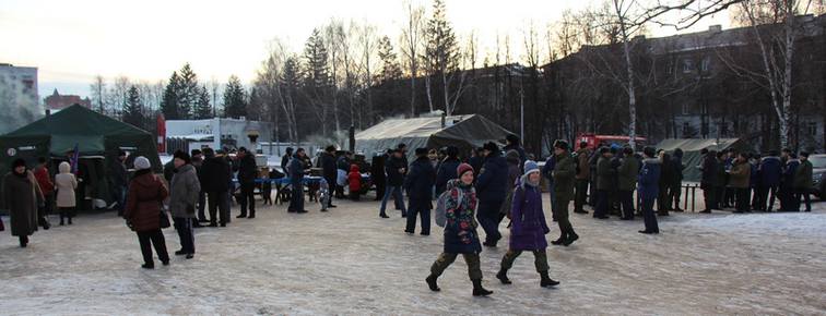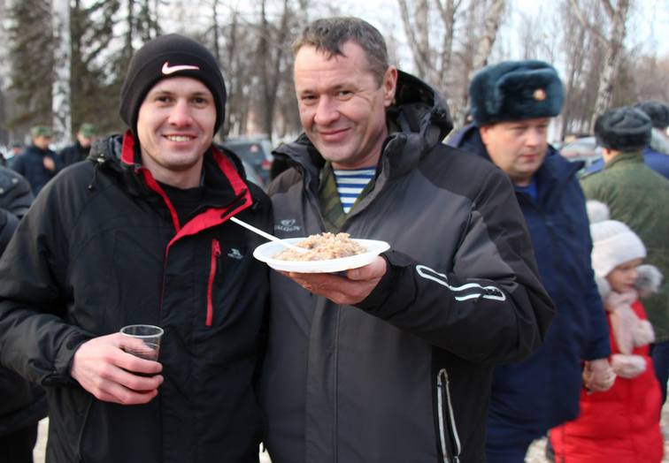 Перед началом концерта на площади перед Городским культурно-досуговым центром участников и гостей мероприятия угощали гречневой кашей и горячим чаем. Солдаткой каши хватило, чтобы угостить всех желающих, ее щедро приготовили сотрудники МЧС России по Республике Башкортостан в полевой кухне. А покушать и согреться можно было в армейских палатках с печами.