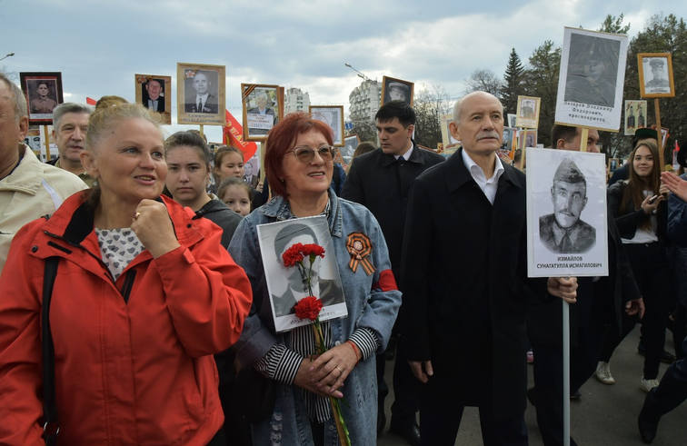 Руководитель республики прошёл в колонне с портретом своего деда. Сунагатулла Исмагилович Измайлов ушёл на войну в 1941 году. Воевал в пехоте на Ленинградском фронте. Награждён медалями. В 1943 году был ранен, домой вернулся инвалидом.