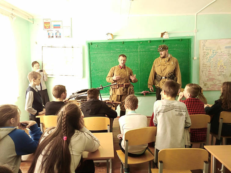 Также организаторы мероприятия провели урок Мужества для учеников школы поселка Тюлюк, где рассказали о Великой Отечественной войне, показали образцы стрелкового оружия Красной Армии и Вермахта.