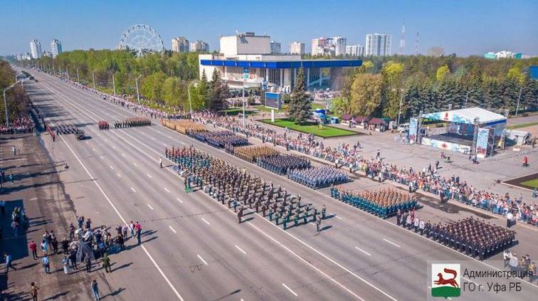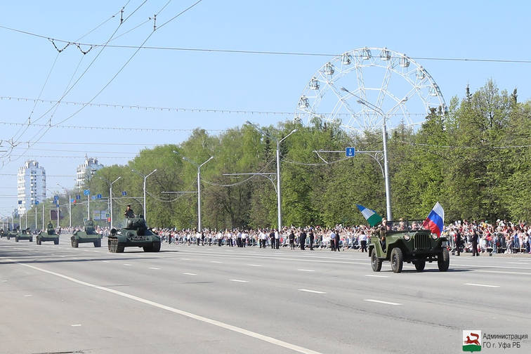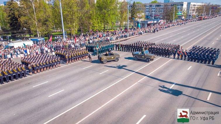 9 мая на проспекте Октября в Уфе впервые за много лет состоялся беспрецедентный по масштабу праздничный парад с участием военной техники, военнослужащих воинских частей Уфимского территориального гарнизона, учреждений силовых структур, дислоцирующихся в Уфе, курсантов и кадетов учебных заведений.