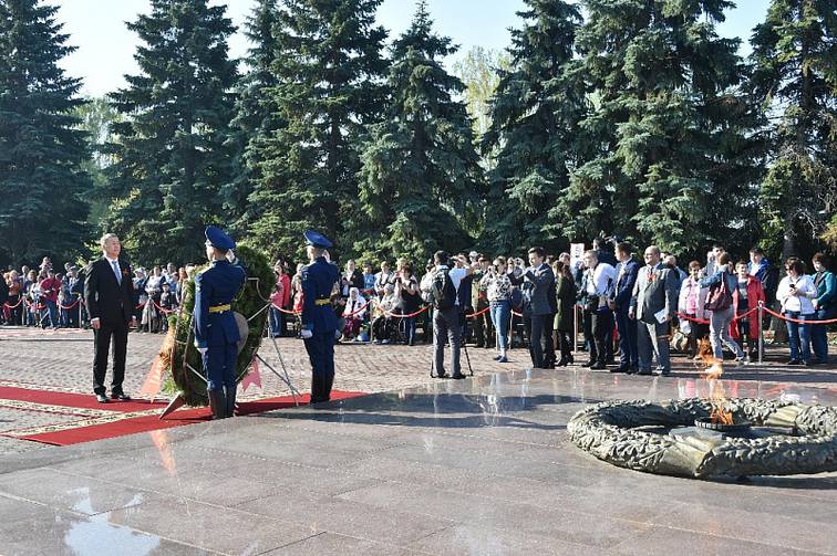 Ранним утром 9 мая в уфимском парке Победы врио главы Башкортостана Радий Хабиров принял участие в торжественной церемонии, посвященной 74-й годовщине Победы в Великой Отечественной войне. От имени многонационального народа Башкортостана руководитель республики возложил венок к памятнику Героям Советского Союза Александру Матросову и Миннигали Губайдуллину, у подножия которого горит Вечный огонь. После исполнения гимнов Российской Федерации и Республики Башкортостан участники церемонии почтили минутой молчания память защитников Отечества, не вернувшихся с полей сражений Великой Отечественной войны.