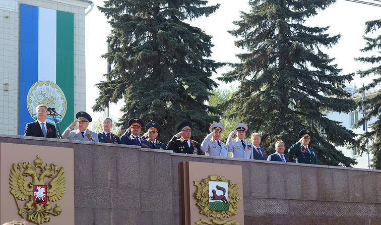 Врио Главы региона приветствовал курсантов Уфимского государственного авиационного технического университета и Уфимского юридического института МВД России, воспитанников Уфимской общеобразовательной школы-интерната с первоначальной лётной подготовкой имени дважды Героя Советского Союза Мусы Гареева, прошедших торжественным маршем в честь бессмертного подвига героев-освободителей.