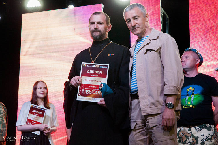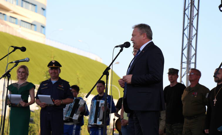 – Добрый вечер, друзья! Здравствуй, Уфа! Сегодня под нашим мирным небом будут звучать песни, в которых вы услышите радость побед и боль потерь, ностальгию по своей юности и мысли о будущем! Уникальное событие соединило в Уфе ветеранов боевых действий из разных городов России. Мы приветствуем вас на V юбилейном Уфимском фестивале патриотической песни «Боевая ВЫСОТА».