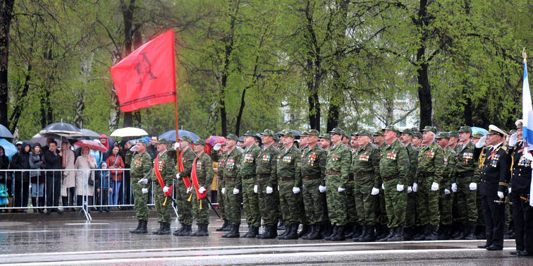 Парад 9 мая 2015 года запомнился не только особой торжественностью и вниманием тысяч зрителей, собравшихся в этот день и час на площади им. Ленина, но и ненастной погодой. Впрочем, это не помешало ветеранам сохранить блестящую выправку и чеканный гвардейский шаг.