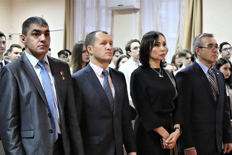 В зале собрались кадеты образовательных организаций Калининского района, матери героев, участники боевых действий разных лет. Память героев почтили глава Администрации Калининского района Сергей Кожевников, первый заместитель главы Администрации города Уфы Салават Хусаинов, исполняющий обязанности председателя регионального отделения ДОСААФ России по РБ Игорь Нурмухаметов.
