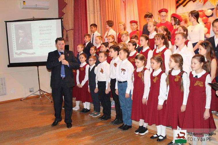 Александр Юрьевич первый раз в Уфе тепло поблагодарил всех за приглашение. Он порекомендовал школьникам брать пример от тех людей, которые несмотря ни на какие обстоятельства, не изменяли себе, остались верны Отчизне, а не от тех, у которых на социальных сетях миллионы лайков. «Знаете, ребята, у вас у каждого в жизни настанет момент, когда вы должны будете выбрать – рискнуть собой или низко опустив голову сделать вид, что ничего не заметили и пройти мимо. Если вы сделаете в такой момент правильный шаг – поверьте мне, вас назовут героем», – рассказал Александр Юрьевич в своем выступлении. А сам он считает героями всех солдат, которые были рядом с ним во время боевых действий.