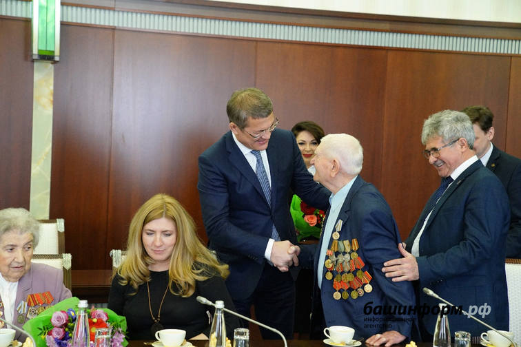 «Но в первую очередь мы хотим поблагодарить вас за победу в войне, за мир над головой, за то, что мы сегодня живем и воспитываем наших детей в мирных условиях. Перед встречей я изучал ваши биографии и многие из вас ведь ушли на фронт, когда вам еще не было и восемнадцати лет», — сказал Радий Хабиров.