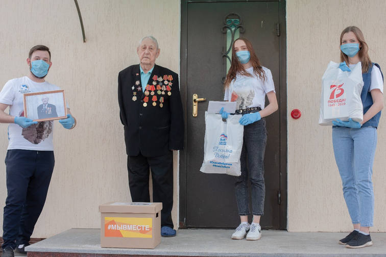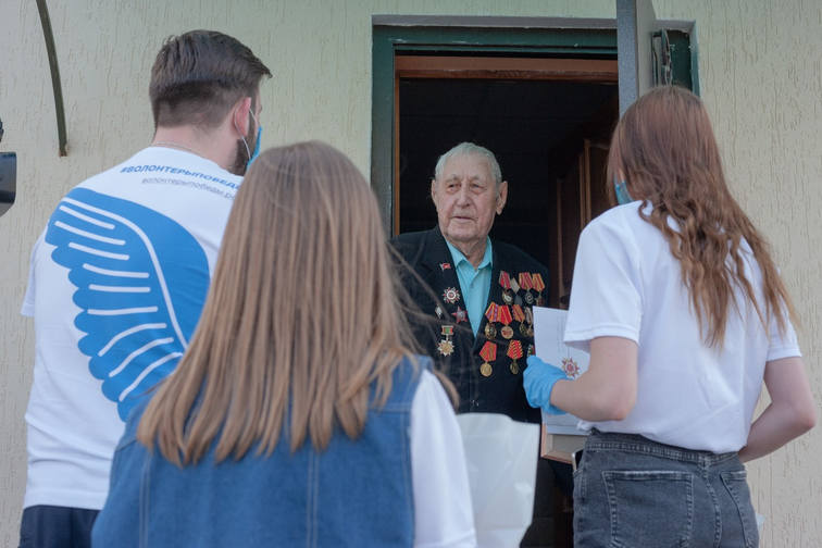 Активисты движения «Волонтеры Победы» поздравляют участников Великой Отечественной войны с Днем Победы. Молодые люди вручают им подарочные наборы от главы Башкортостана Радия Хабирова и партии «Единая Россия».