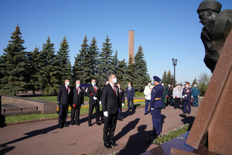 9 мая в уфимском парке Победы Глава Башкортостана Радий Хабиров принял участие в торжественной церемонии, посвященной 75-летию Победы в Великой Отечественной войне. От имени многонационального народа Башкортостана руководитель республики возложил венок к памятнику Героям Советского Союза Александру Матросову и Миннигали Губайдуллину, у подножия которого горит Вечный огонь.