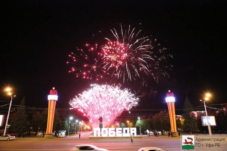 9 мая 2020 г. Уфе в 23.00 в честь Дня Великой Победы на семи площадках состоялся праздничный салют. Всего было дано три тысячи залпов. Фейерверк длился 45 минут.