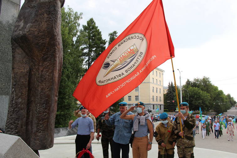 2 августа, в День воздушно-десантных войск ветераны ВДВ и представители общественности в Уфе возложили в цветы к мемориалу «Скорбящая мать». В этом году этот праздник носит особенно торжественный характер – «крылатая пехота» отмечает свое 90-летие. С профессиональным праздником и 90-летием создания воздушно-десантных войск десантников поздравил Президент Российской Федерации Владимир Путин (http://vysotarb.ru/news/2157/). Накануне, 30 июля Глава Администрации Республики Башкортостан Радий Хабиров встретился с ветеранами Воздушно-десантных войск Российской Федерации. Руководитель региона тепло поздравил десантников с наступающим праздником (http://vysotarb.ru/news/2156/). В День ВДВ ветераны-десантники традиционно почтили память своих павших товарищей. Сохраняющейся эпидемиологической опасности ветераны противопоставили необходимые меры предосторожности. Такие же памятные мероприятия прошли во всех городах и районах Башкортостана. В столице республики г. Уфе в торжественной церемонии приняли участие заместитель руководителя Администрации Главы Республики Башкортостан по внутренней политике Урал Кильсенбаев, первый заместитель главы Администрации г. Уфы Салават Хусаинов, глава администрации Орджоникидзевского района Марат Галиуллин. Память павших собравшиеся почтили Минутой молчания.