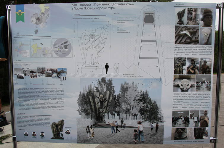 – Работа началась осенью 2018 года, когда была высказана идея установить в Уфе памятный монумент десантникам, – рассказал нам Артем Михайлович. – Я сразу же приступил к работе и подумал, прежде всего, о том, как с наибольшей выразительностью запечатлеть в монументе посвящение роду войск? Очевидно, что только через связь поколений – показать преемственность героического прошлого и героического настоящего. Поэтому присутствует благословляющий жест от воинов прошлого – настоящему.