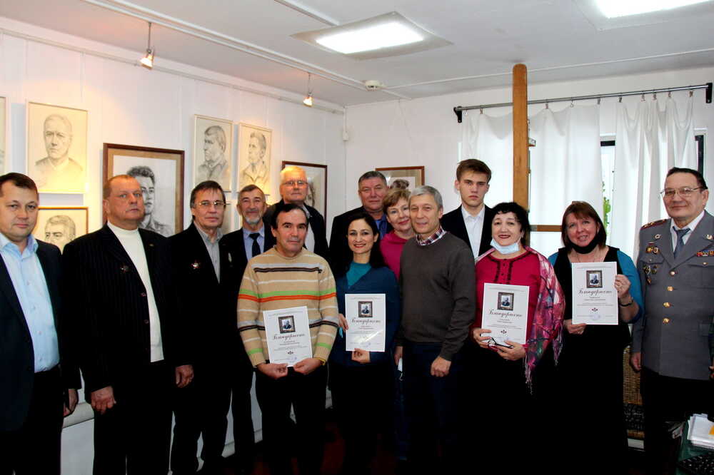На снимке: участники встречи - художники и их герои.