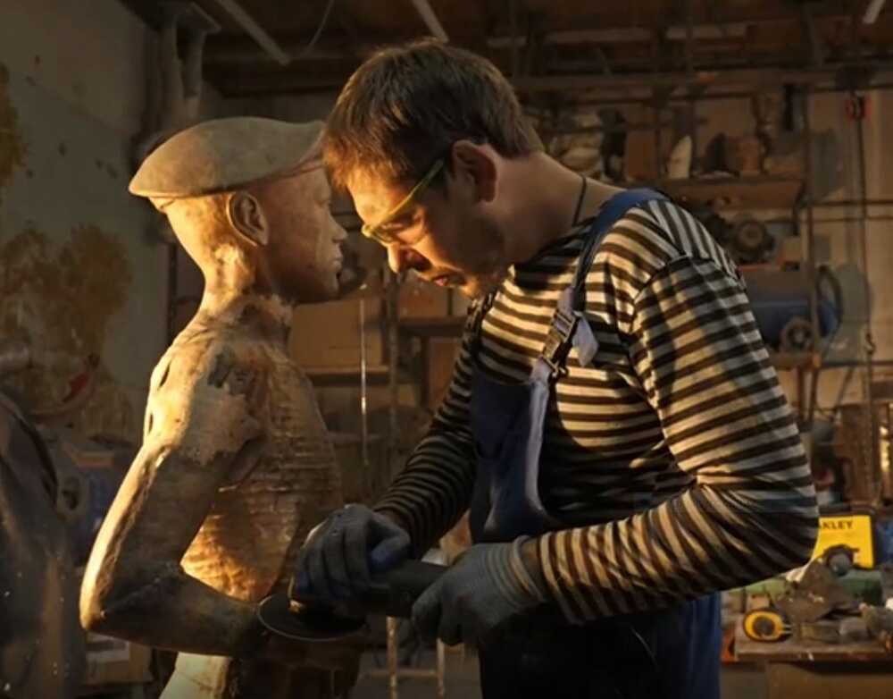 На фото: координатор проекта Рифат Хузагалиев и скульптор Артем Зеленин.