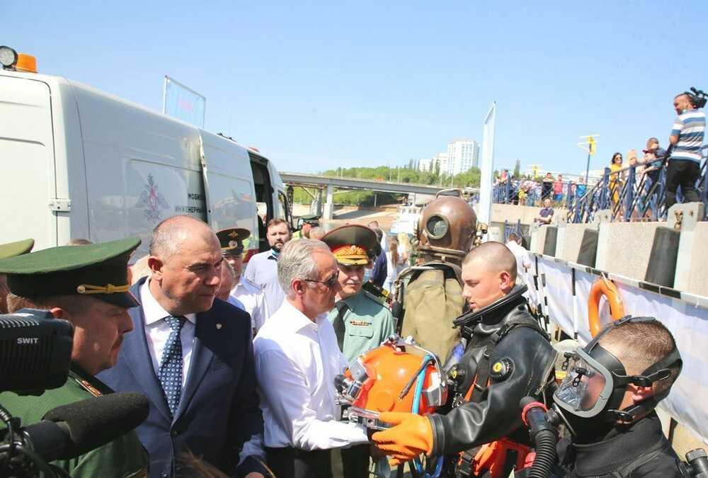 До отплытия гости мероприятия могли ознакомиться с демонстрацией образцов средств инженерного вооружения инженерных войск ВС РФ.