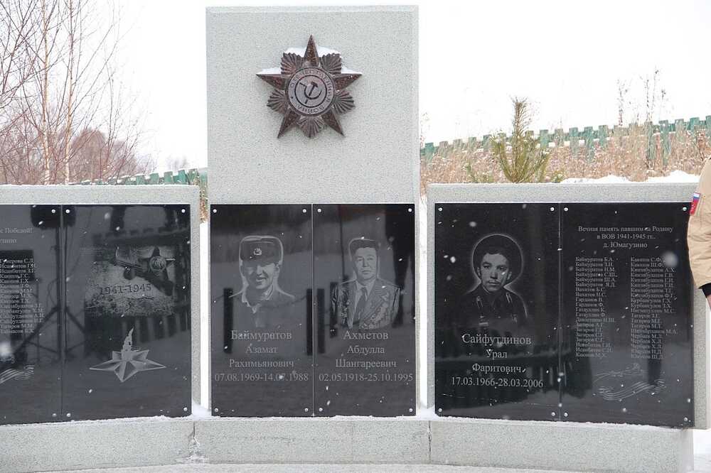 В д. Юмагузино на родине Героя Советского Союза Абдуллы Ахметова состоялось открытие памятника участникам Великой Отечественной войны — уроженцам этой деревни.