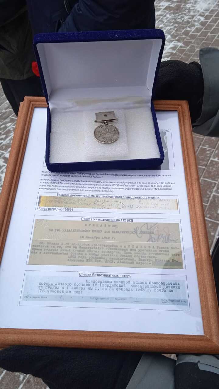 Во время митинга поисковики передали родным медаль красноармейца 112-ой Башкирской кавалерийской дивизии, пропавшего без вести 23 февраля 1943 года — Фаттахова Усмана Фаттаховича. Медаль была найдена луганскими поисковиками в урочище Юлино-1, там располагался штаб дивизии и именно оттуда конники уходили на прорыв после рейда по тылам фашистских войск. Также поисковики передали вкладыш медальона Смакова Саетзады Бахтигареевича — медальон был найден питерскими поисковиками, на месте, где боец получил тяжелое ранение в ноги, в результате которого он потерял ноги. Записка была передана детям Саетзады Бахтигареевича.