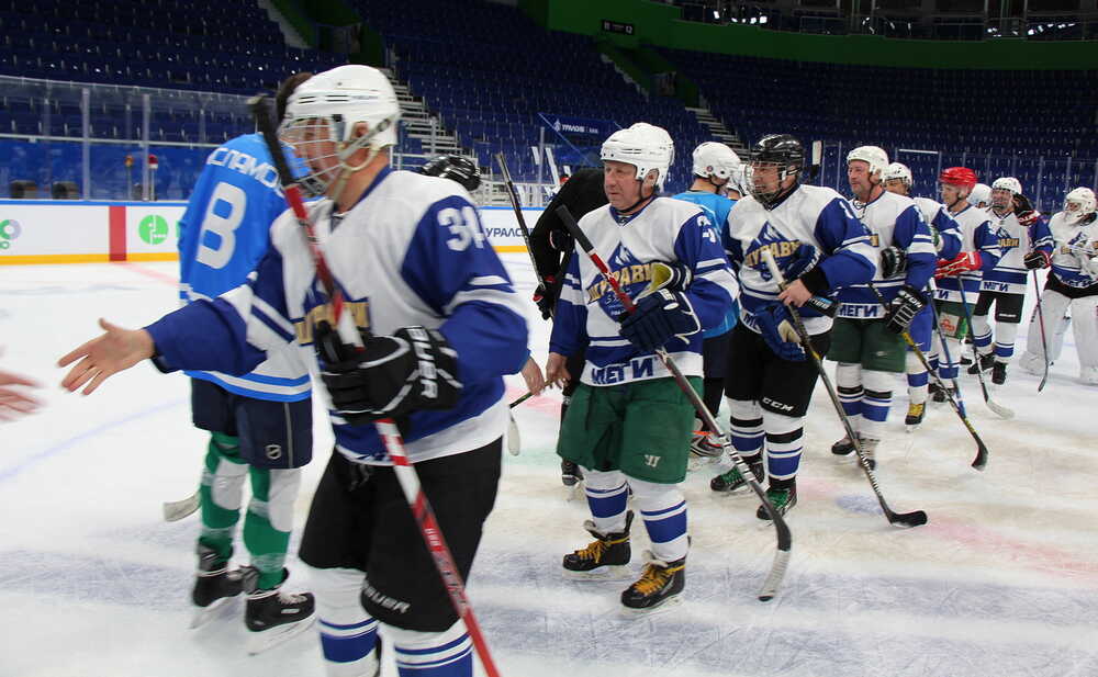 В минувшее воскресенье на льду «Уфа-арена» состоялся товарищеский матч хоккейных команд «Шурави» (Уфа) и «Газпром-трансгаз» (Уфа). Игра была настолько товарищеской по самому своему духу, что ворота обеих команд защищали вратари команды «Шурави» — Сергей Шляхов и Фархад Иксанов. При этом стоит отметить, что команда «Газпром-трансгаз» (Уфа) выступает в XI Региональном чемпионате Фестиваля Ночной Хоккейной Лиги (Республика Башкортостан) в составе команд дивизиона Любитель 40+, в то время как «Шурави» — в составе дивизиона Любитель 50+. Но тем интереснее и полезнее для приобретения тренировочного потенциала эта игра была для команды «Шурави».