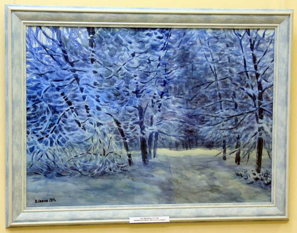 «Это не просто пейзажи, их можно уже назвать тематическими, высокохудожественными работами. Вот, к примеру, картина «Зимние кружева». Тут и очень красивое композиционное решение, светлое пятно среди веток, и взгляд устремляется к свету, на освещенную поляну, — говорит Стелла Юльевна. — Решено практически в монохроме — синие и голубые оттенки. И в то же время — это момент какого-то обобщения. Во всех работах прекрасно передано настроение и состояние природы, с большим вниманием к мелочам, с великой любовью к красоте своей Родины. У выставки очень правильное название.