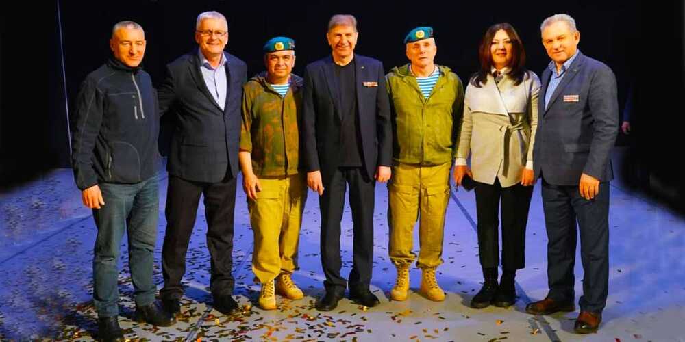 Торжественное собрание продолжилось красочным концертом. Перед зрителями выступили лучшие творческие коллективы города и приглашенные исполнители авторских песен — Владимир Мазур и одна из самых лучших групп России, ветераны боевых действий в Афганистане — группа «Ростов».