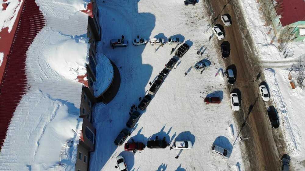 Перед районным Дворцом культуры из машин был образован главный символ спецоперации — буква Z латинского алфавита. В Минобороны разъяснили, что за этим символом зашифрованы фразы: «За Победу» и «Задача будет выполнена».