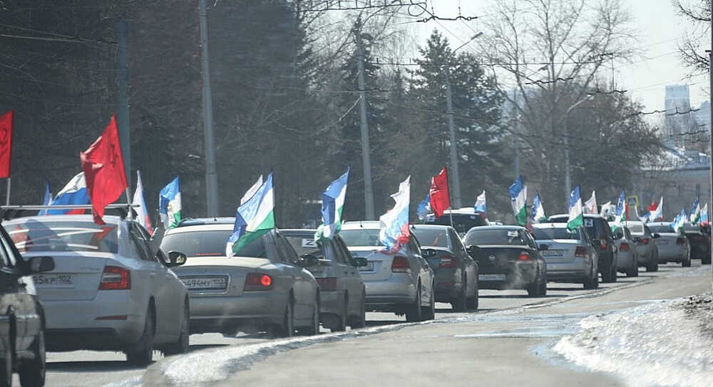 18 марта в Уфе прошел массовый патриотический автопробег. По улицам города проехали более сотни машин с символами «Z», с флагами России, Башкортостана и различных родов войск. Колонна длиною почти до 1 км стартовала с автостоянки у стадиона «Нефтяник», проследовала по проспекту Октября, улицам 50 лет Октября, Цюрупы, Заки Валиди, Набережная, Генерал-губернатора Перовского и до парковки Уфимского амфитеатра. Далее активисты планируют принять участие в митинге-концерте «Своих не бросаем», который в 14 часов начался на площади у памятника Салавату Юлаеву.