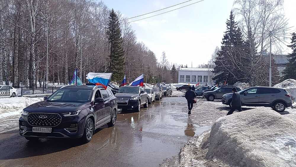 Автоколонна в тридцать машин с российскими флагами и флагами российских войск прошла по городским улицам. Горожане тепло приветствовали участников автопробега. Акция завершилась митингом в парке Победы и возложением венков к памятнику землякам-участникам Великой Отечественной войны.