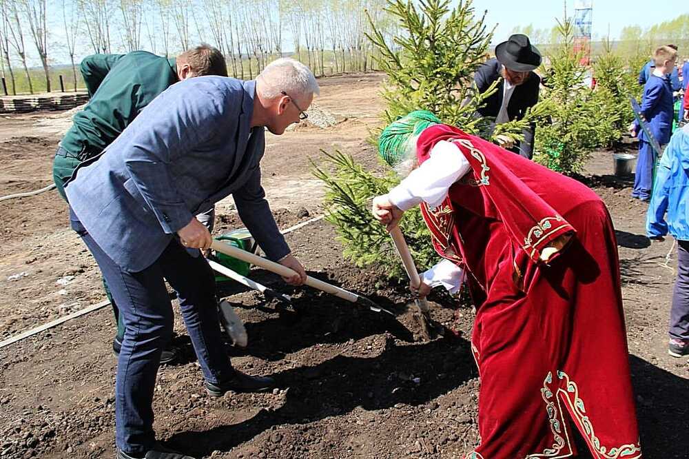 Председатель Госсобрания Башкортостана Константин Толкачев, премьер–министр правительства Андрей Назаров, член Совета Федерации Лилия Гумерова высадили именные ели дважды Героя Советского Союза Мусы Гареева и Героев Советского Союза Минигали Губайдуллина и Александра Матросова.