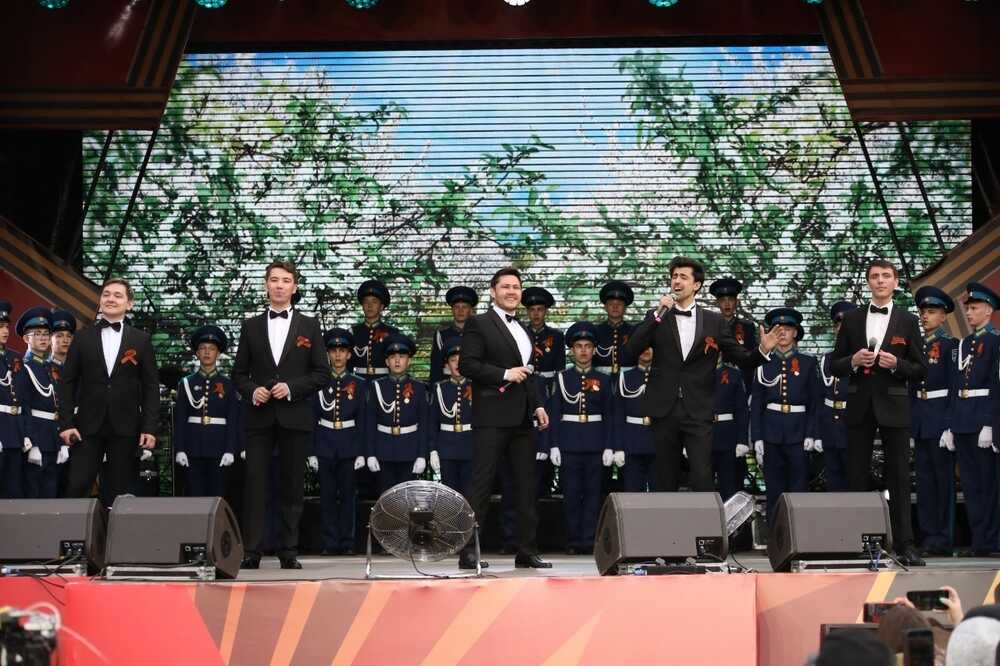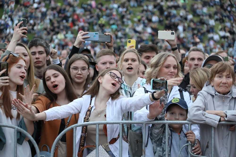 С воодушевлением встретили зрители популярных российских певцов, тепло поздравлявших их со сцены с праздником Победы. Слушая их светлые и немного озорные композиции о любви, уфимцы разных возрастов подпевали артистам и двигались в такт музыке.