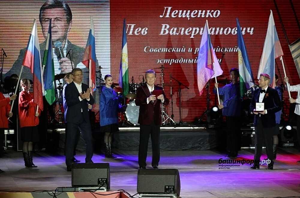 «Я вижу, что здесь любят песню, чтят традиции и историю нашего Отечества. В этот праздничный день особенно хочется поприветствовать всех тружеников славной Башкирии, сказать им добрые слова за все, что они делают для страны. Хочу пожелать жителям республики всяческих благ и радостей, склонить голову перед теми, кто не с нами, чью память мы чтим. В Уфе я не в первый раз, но впервые здесь на празднике 9 мая, обычно Москва в этот день меня не отпускает. Приятно видеть много молодежи, она живет будущим, а наше будущее — это созидание», — подчеркнул Лещенко.
