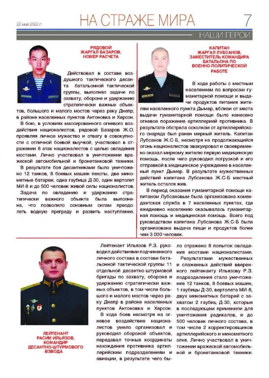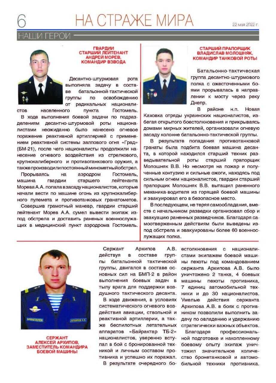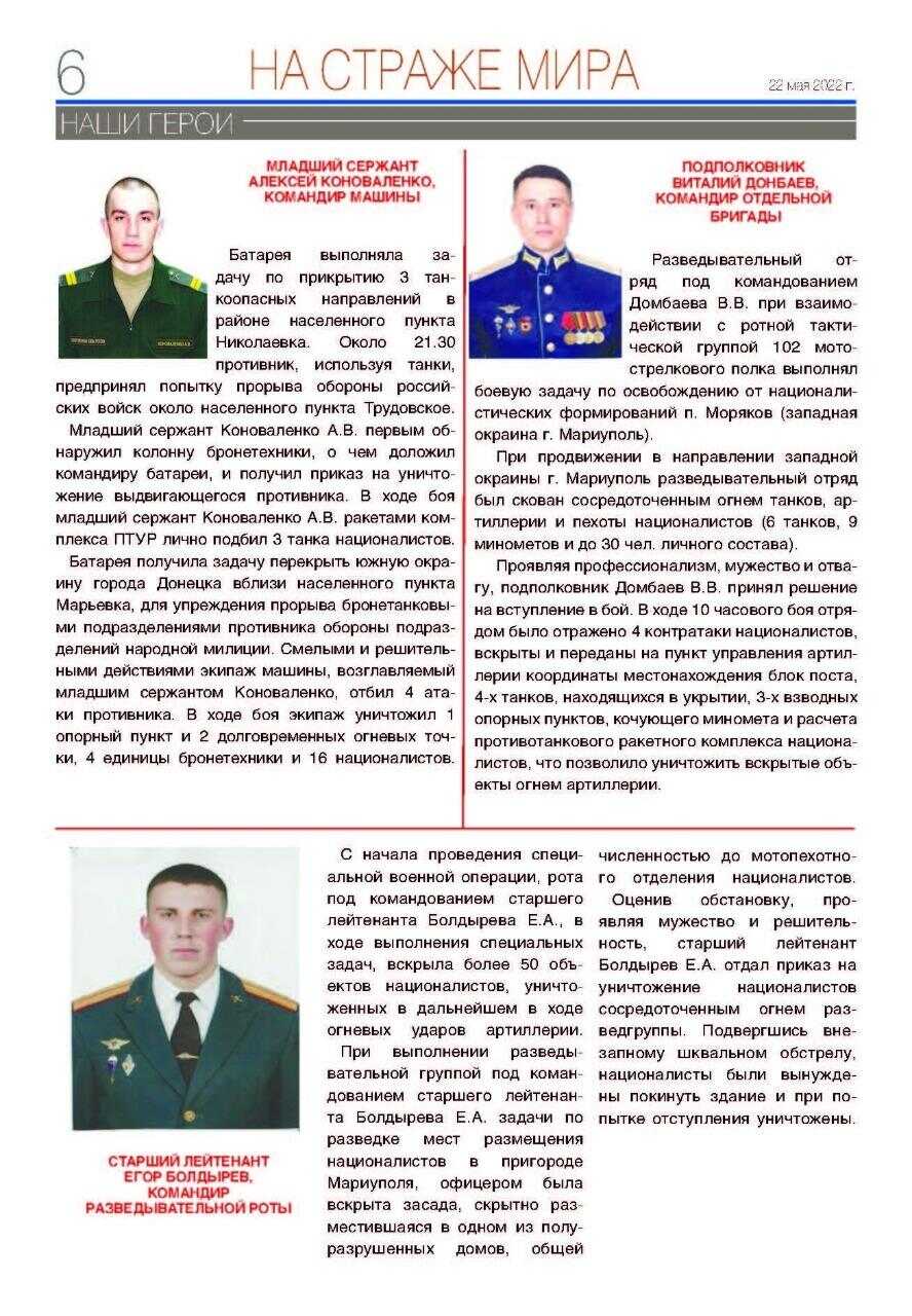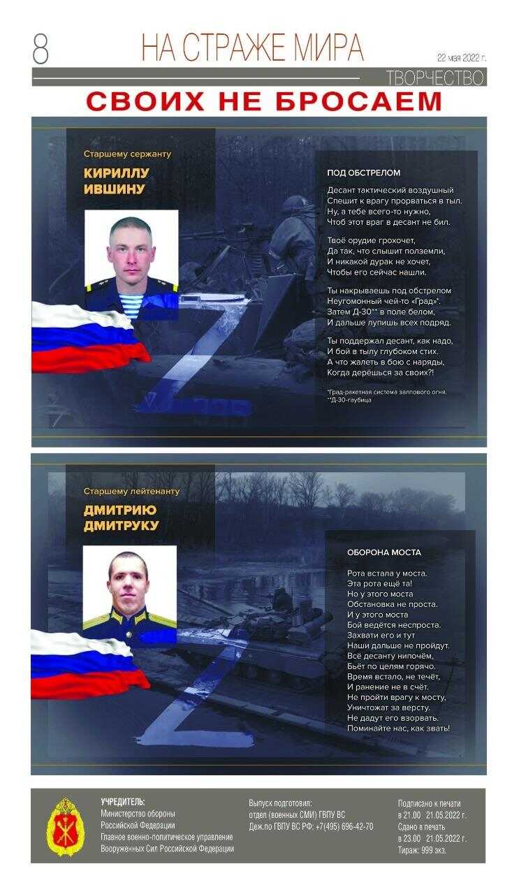 Сегодня мы представляем вниманию наших читателей специальный выпуск газеты Министерства обороны Российской Федерации (выпуск №1 от 22 мая 2022 года). На страницах этой газеты рассказывается о подвигах и беспримерном мужестве лучших сынов и дочерей России, героически сражающихся за мирное будущее и спокойствие границ нашего великого Отечества. Как подчеркнул в одном из своих выступлений Президент Российской Федерации Владимир Путин, Россия войны не начинает, она их заканчивает.