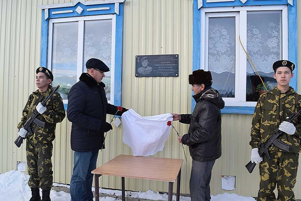В деревне Кильдигулово Бурзянского района увековечили память погибшего в ходе СВО кавалера ордена Мужества, ефрейтора Сынбулата Билалова. Установили мемориальную доску на фасаде здания школы, в которой он учился, сообщает пресс-служба местной администрации. На церемонии открытия присутствовали односельчане, родственники, учителя, друзья, представители ветеранских организаций. Они почтили память погибшего земляка минутой молчания.