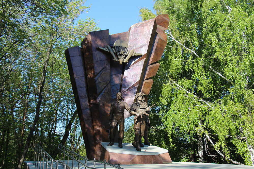 Церемония отдания чести и коленопреклонения прошла и у памятника десантникам всех поколений, также расположенном в уфимском Парке Победы.