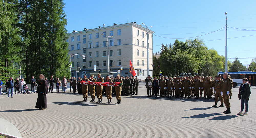 Затем, в порядке маршевого следования, парадный расчет ветеранов боевых действий проходит к расположенному неподалеку от Парка Победы мемориалу «Скорбящая мать». В торжественной церемонии также приняли участие юные воспитанники православного военно-патриотического клуба «Александр Невский».