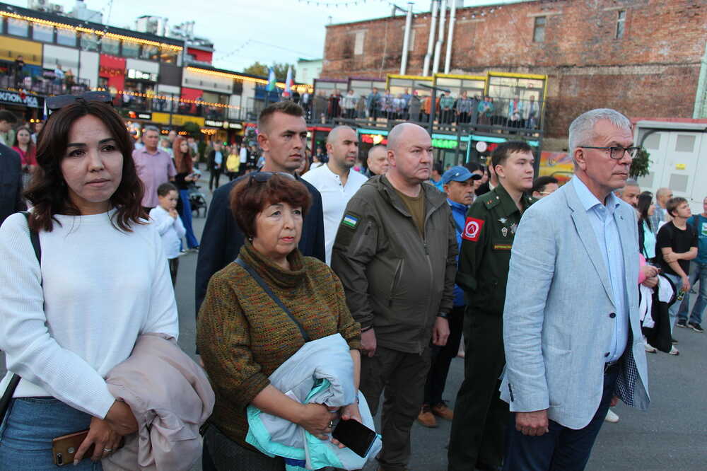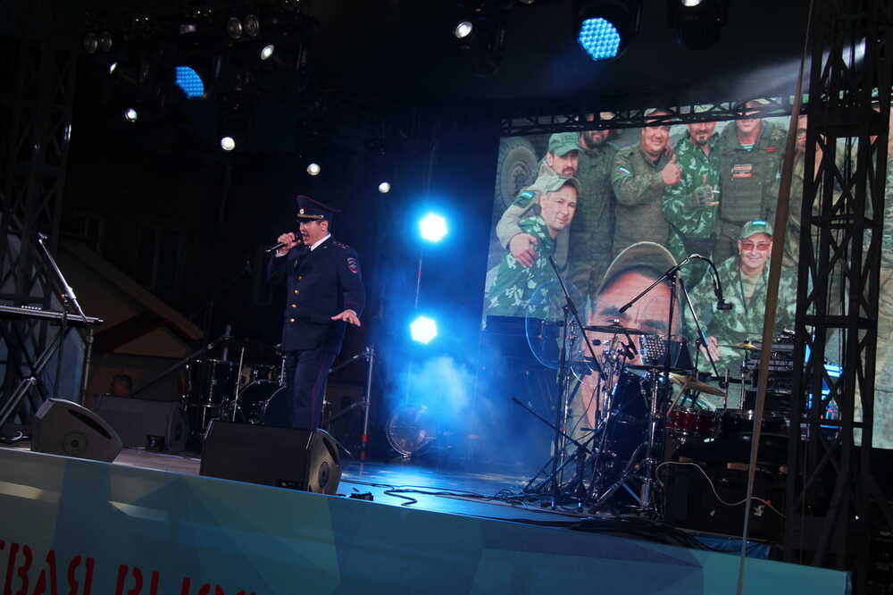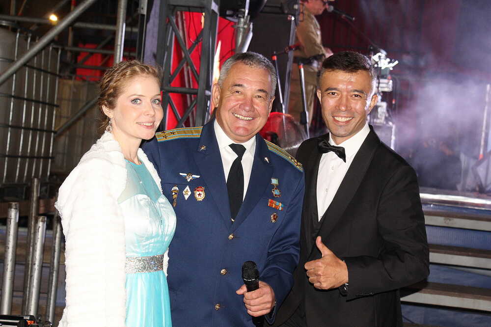 Концерт провели: актриса Национального молодёжного театра имени Мустая Карима Юлия Абрарова, гвардии полковник Радик Габидуллин и Заслуженный артист Республики Башкортостан Ильгиз Миниахметов.
