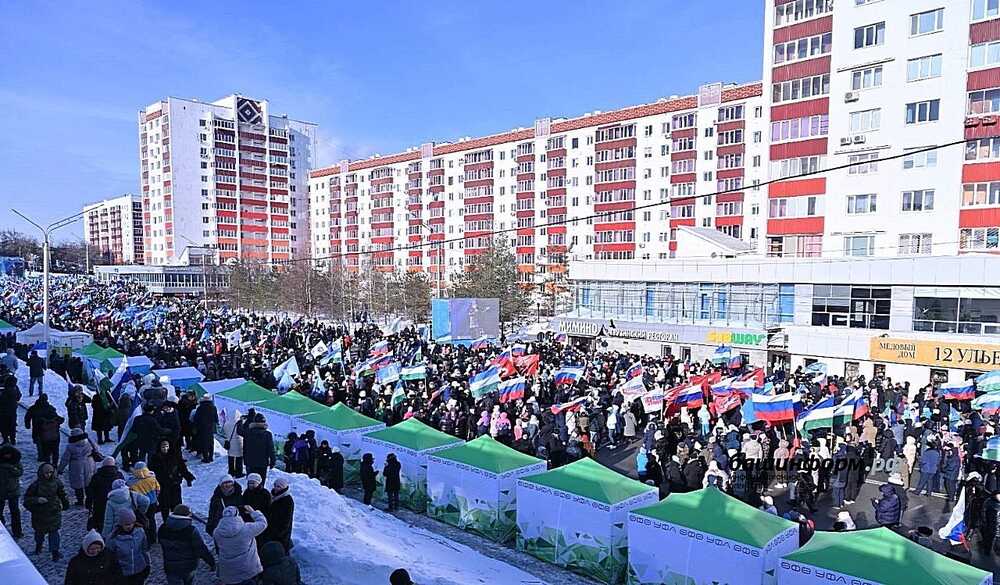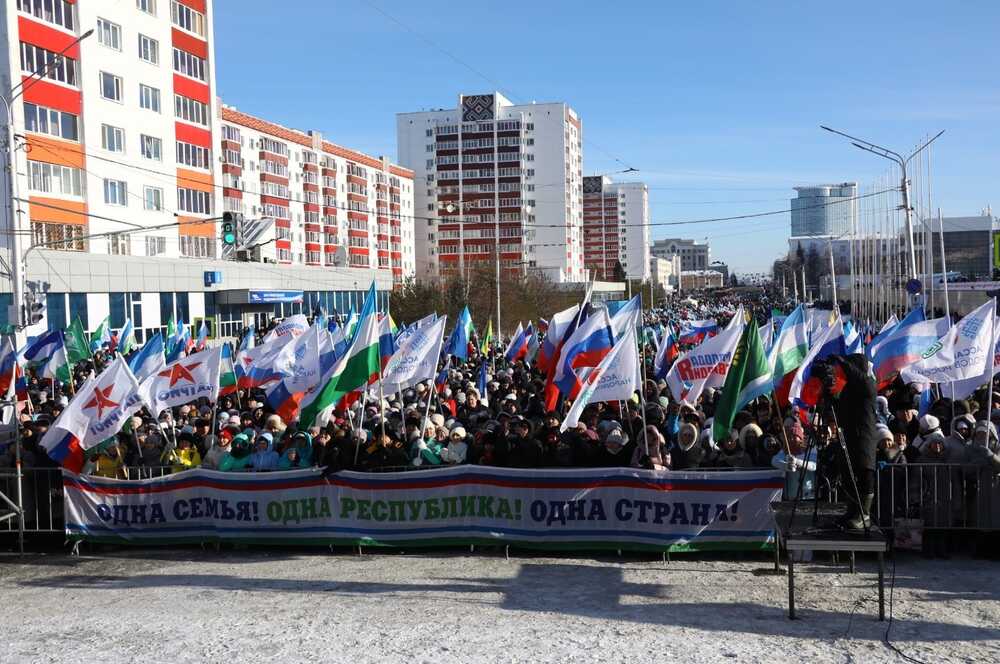 Тысячи неравнодушных жителей республики пришли выразить свою солидарность Главе региона Радию Хабирову, выступающему за единство республики, единый многонациональный народ Башкортостана. Уже до начала мероприятия люди, скандируя «Россия! Башкортостан!», начали стекаться к главной сцене и заполонили ближайшие улицы. Многие несли в руках флаги республики и страны.