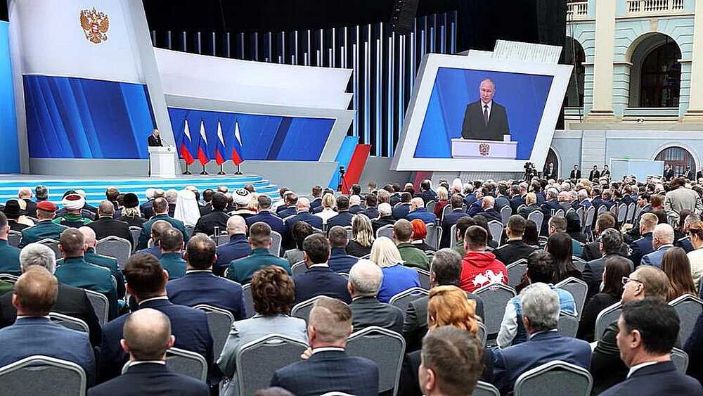 В четверг, 29 февраля, Президент России Владимир Путин огласил традиционное послание Федеральному собранию в Гостином Дворе. Глава государства затронул вопросы внутренней политики государства, включая социальную поддержку граждан, экономического развития, темы обеспечения безопасности страны. Он лично работал над текстом послания. Ранее президент подчёркивал, что предстоящее послание определит стоящие перед Россией задачи на ближайшие шесть лет.